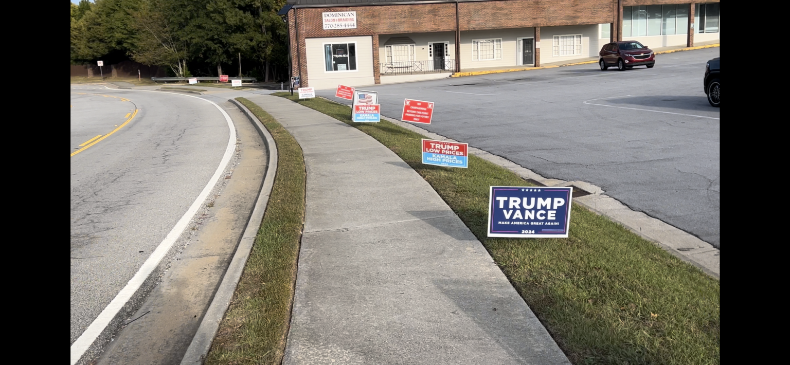 About an hour later, Harris-Walz signs joined the Trump signs.