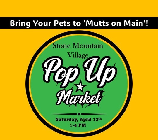 The pop-up market and the Mutts on Main event will take place on Saturday, April 12, 1-4 p.m., at the Pavilion on the Lawn, 5326 Manor Drive in Stone Mountain, and can be accessed from downtown Main Street.