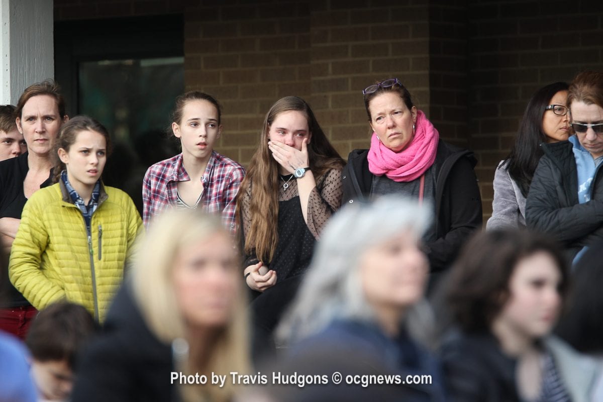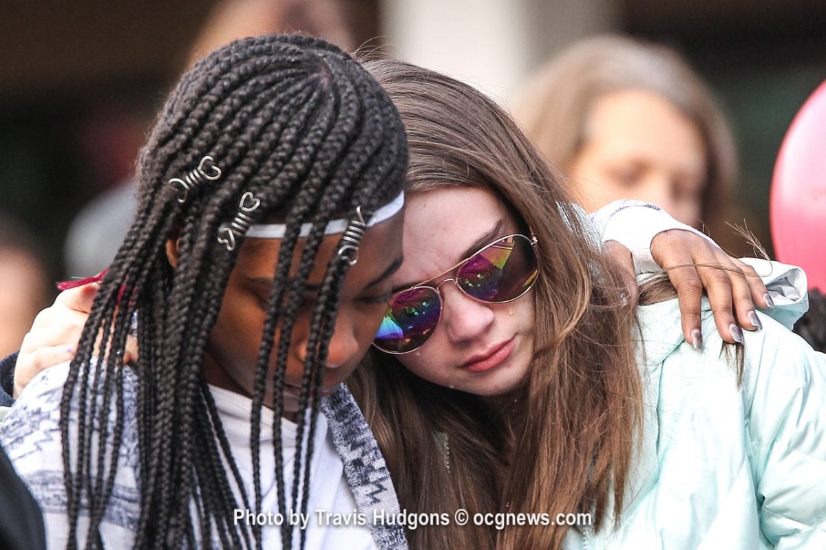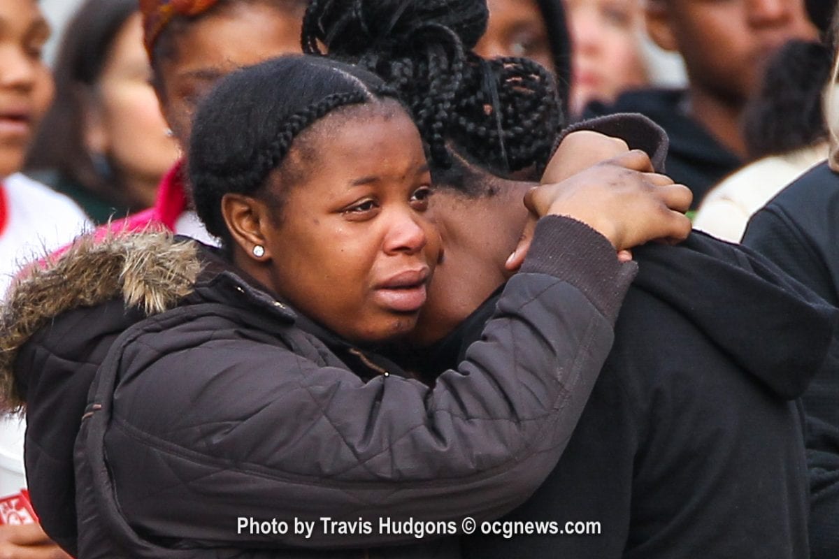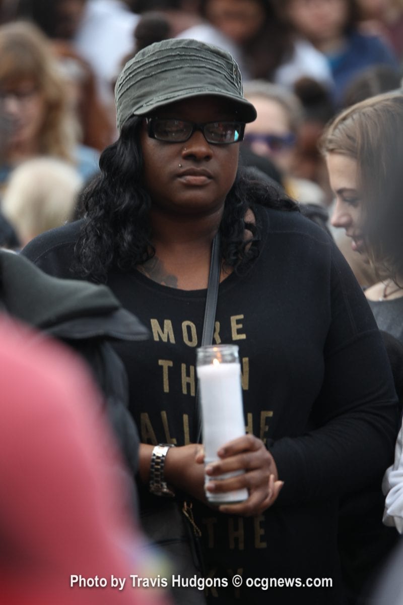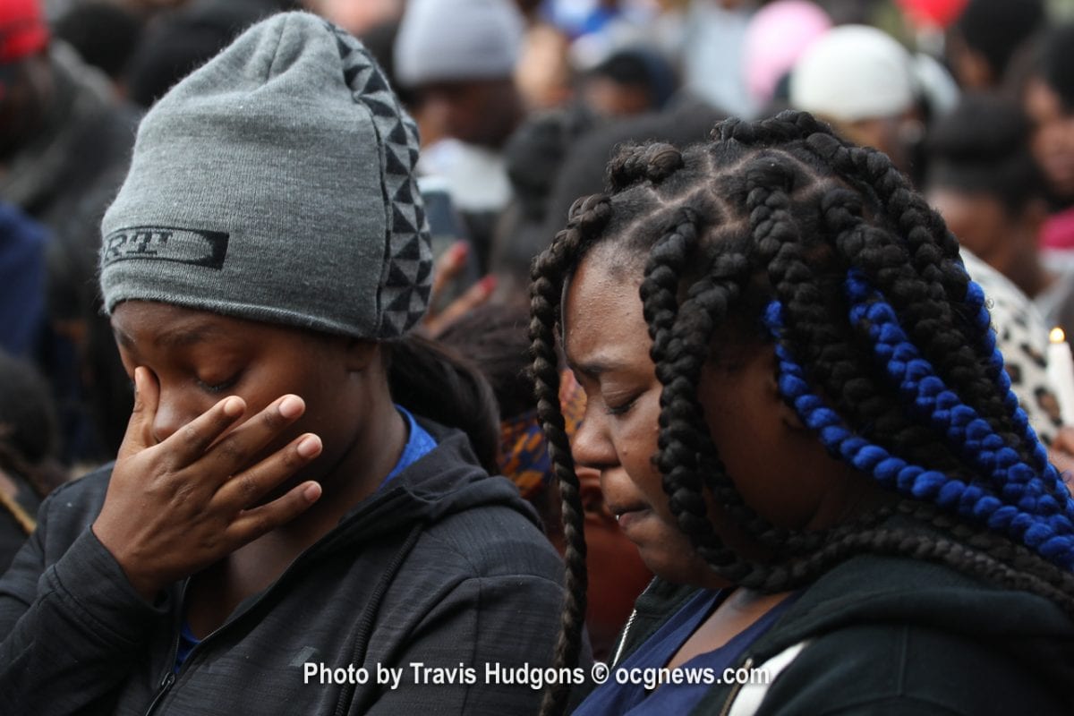 As the sun fell and tears flowed, the mournful crowd laid hands on one another and prayed as they lit candles and released balloons honoring the life of the young victim.