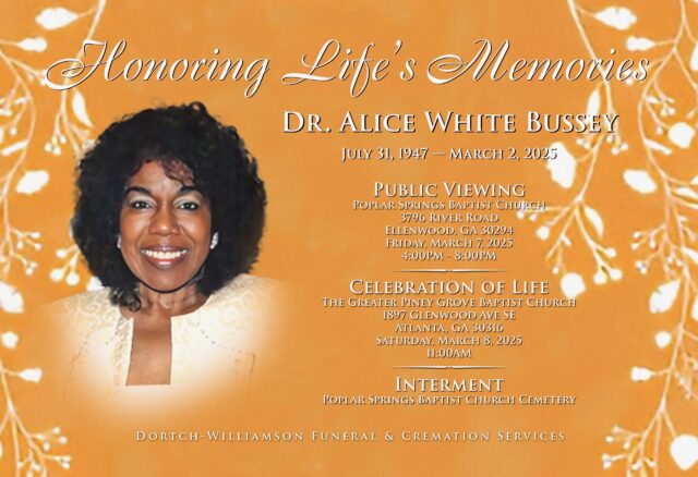 ATLANTA— Alice White Bussey, a pioneering florist and business leader, passed away on Sunday, March 2, at the age of 77. Alongside her husband, the late James L. Bussey II, she made history in 1962 by opening Atlanta’s first Black-owned FTD floral shop.