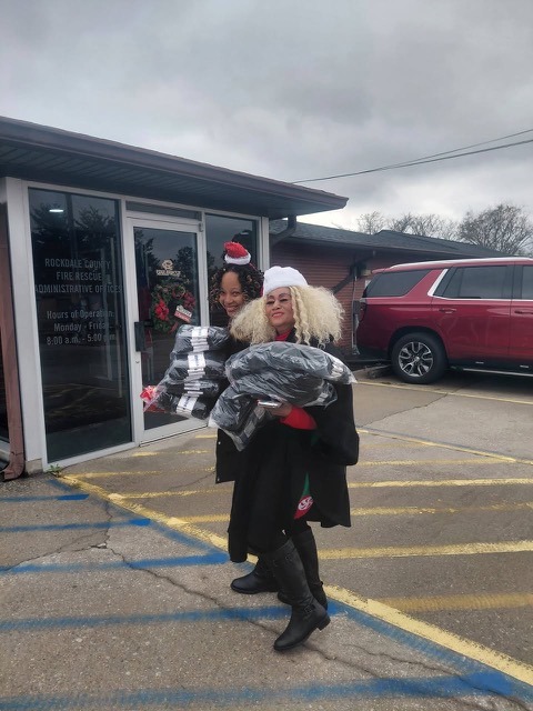 ROCKDALE COUNTY, GA—Community activist Josie Dean, her daughter, Canei Lampkin, and other volunteers gifted Rockdale County firefighters and City of Conyers police officers with bundles of socks this holiday season.